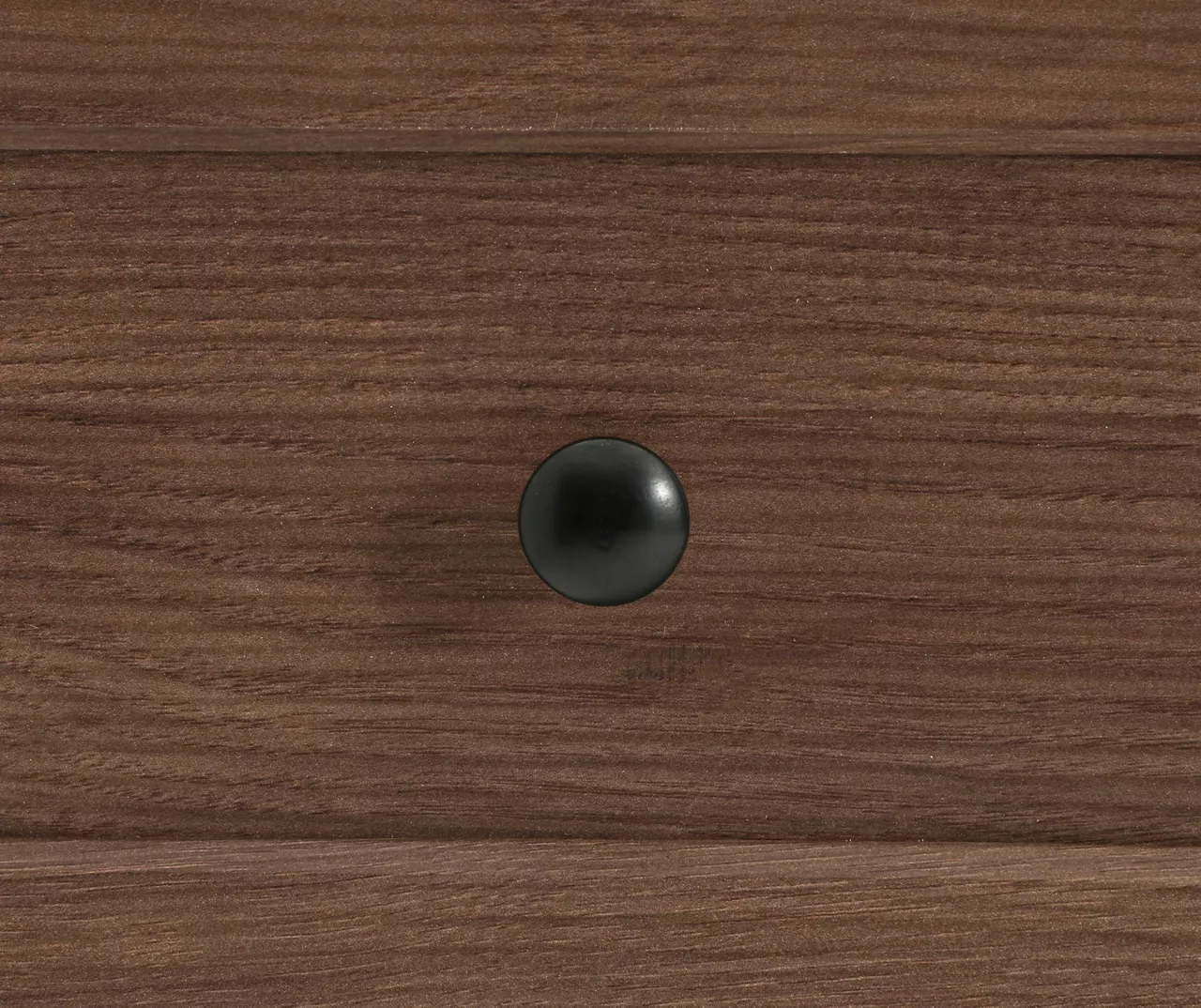 - Durable melamine veneer in a warm walnut finish is heat tolerant and easy to clean