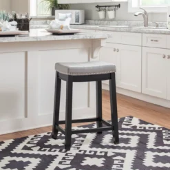 Brooke Gray & Black Faux Leather Backless Padded Counter Stool