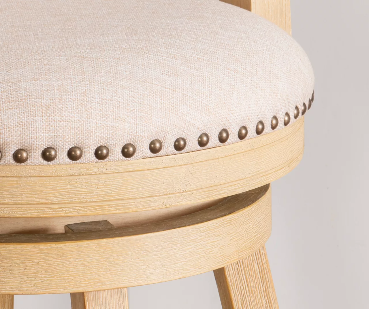 Rustic yet elegant, this counter stool blends a refined silhouette with a neutral finish and antique brass nailheads for a casual beauty that suits most styles. Padded seat and back makes this stool a comfortable choice for a farmhouse kitchen or traditional breakfast nook. The foot rests offer stability to the piece, while the stool features a smooth swivel motion for ease of use and added comfort.