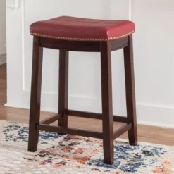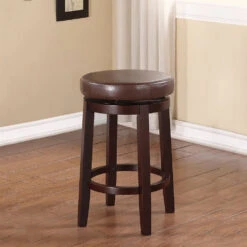 Bali Brown Faux Leather Backless Swivel Counter Stool, (24″)
